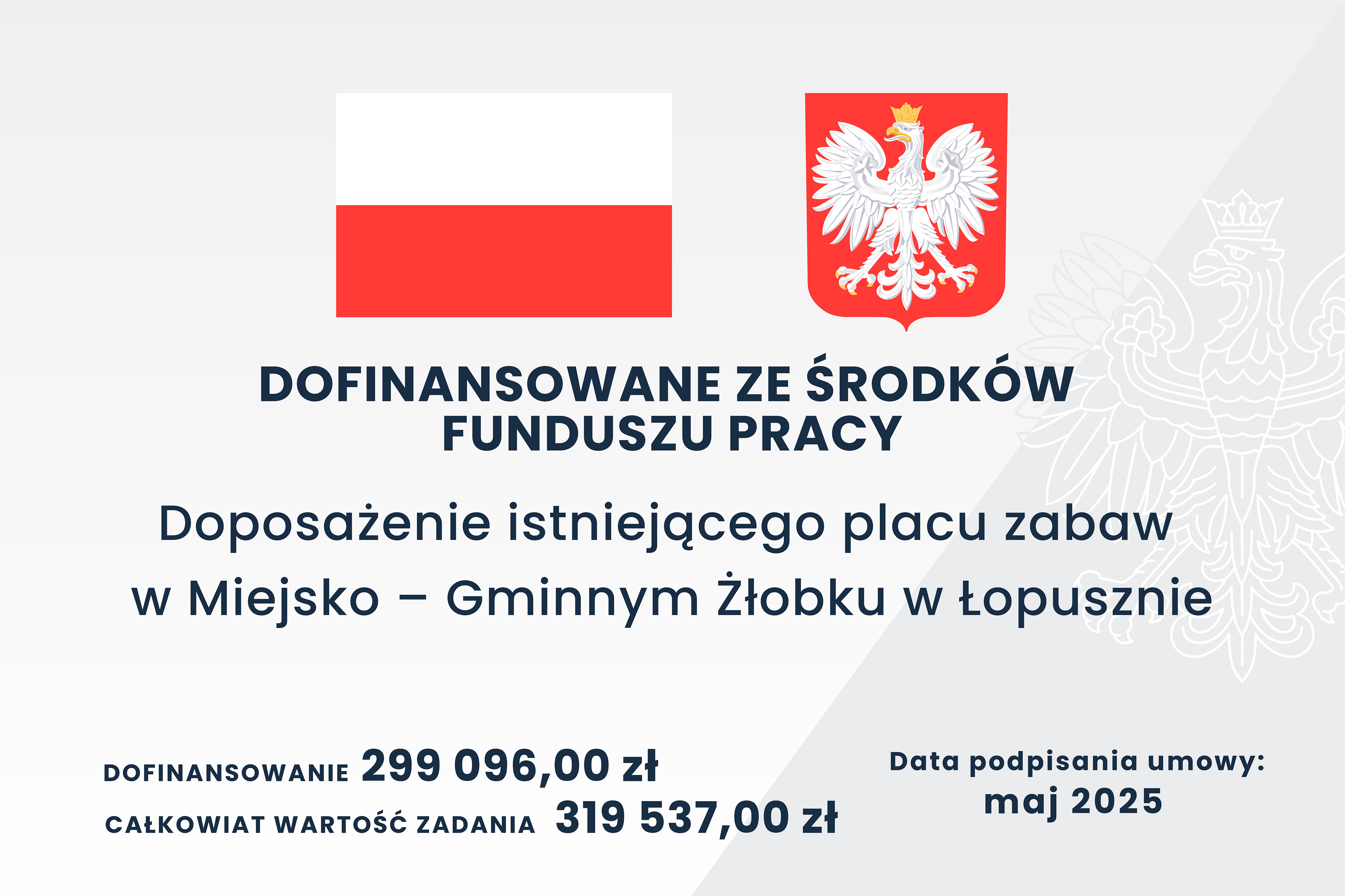 W grudniu zakończono realizację zadania pn. ,,Doposażenie istniejącego placu zabaw w Miejsko- Gminnym Żłobku w Łopusznie’’. Projekt zakładał m.in. opracowanie dokumentacji projektowej, zakup i montaż elementów placu zabaw, wykonanie nawierzchni. Należy podkreślić, iż powyższa inwestycja powstała w ramach resortowego Programu Aktywne Place Zabaw na rok 2025. Całkowita wartość zadania wyniosła 319 537,00 zł brutto. Pozyskane dofinansowanie przez Gminę Łopuszno wyniosło 299 096,00 zł