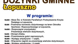 13:30 - Przemarsz korowodu dożynkowego na teren Ośrodka Sportowo- Wypoczynkowego w Łopusznie,