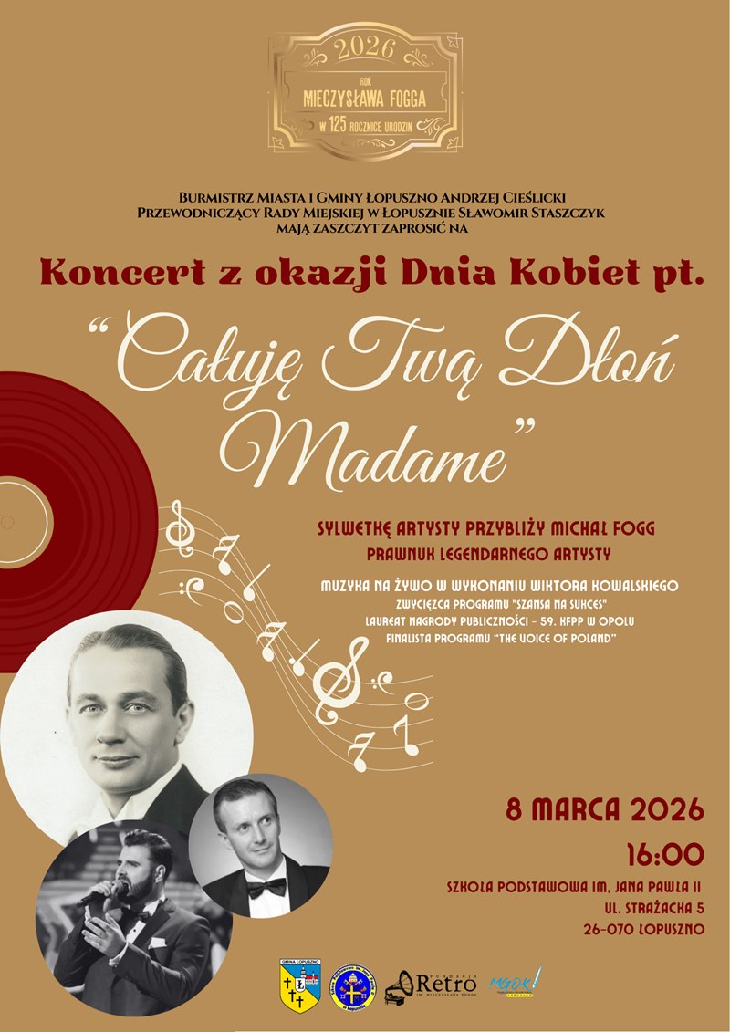 mają zaszczyt zaprosić na wyjątkowy koncert z okazji Dnia Kobiet pt. „Całuję Twoją Dłoń Madame”.